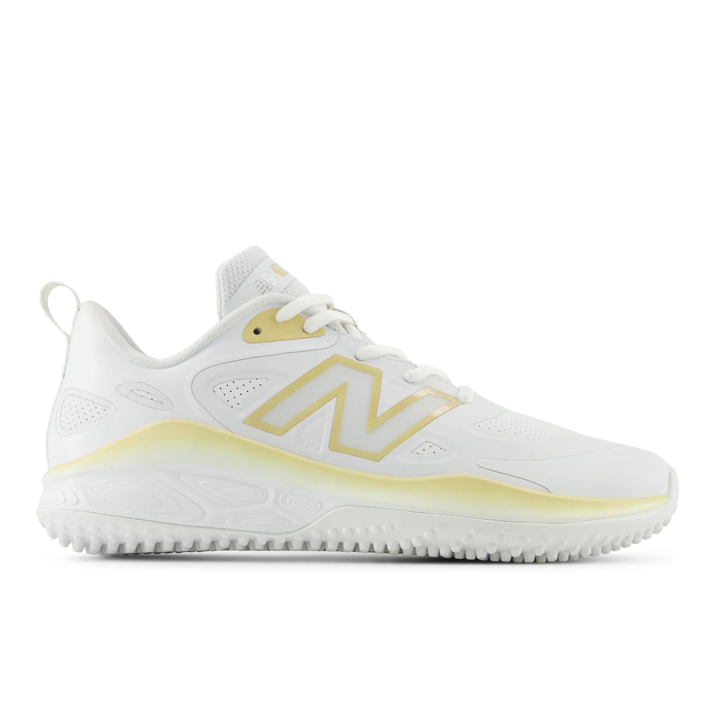 Features - Fresh Foam midsole cushioning is precision engineered to deliver an ultra-cushioned, lightweight ride - Nubbed rubber outsole provides lightweight traction on turf - Finished with metallic gold detailing to represent the gold standard of comfort delivered by New Balance Material - Breathable upper mesh layered with no-sew film for added durability and easy cleaning Style #: STVELOC4