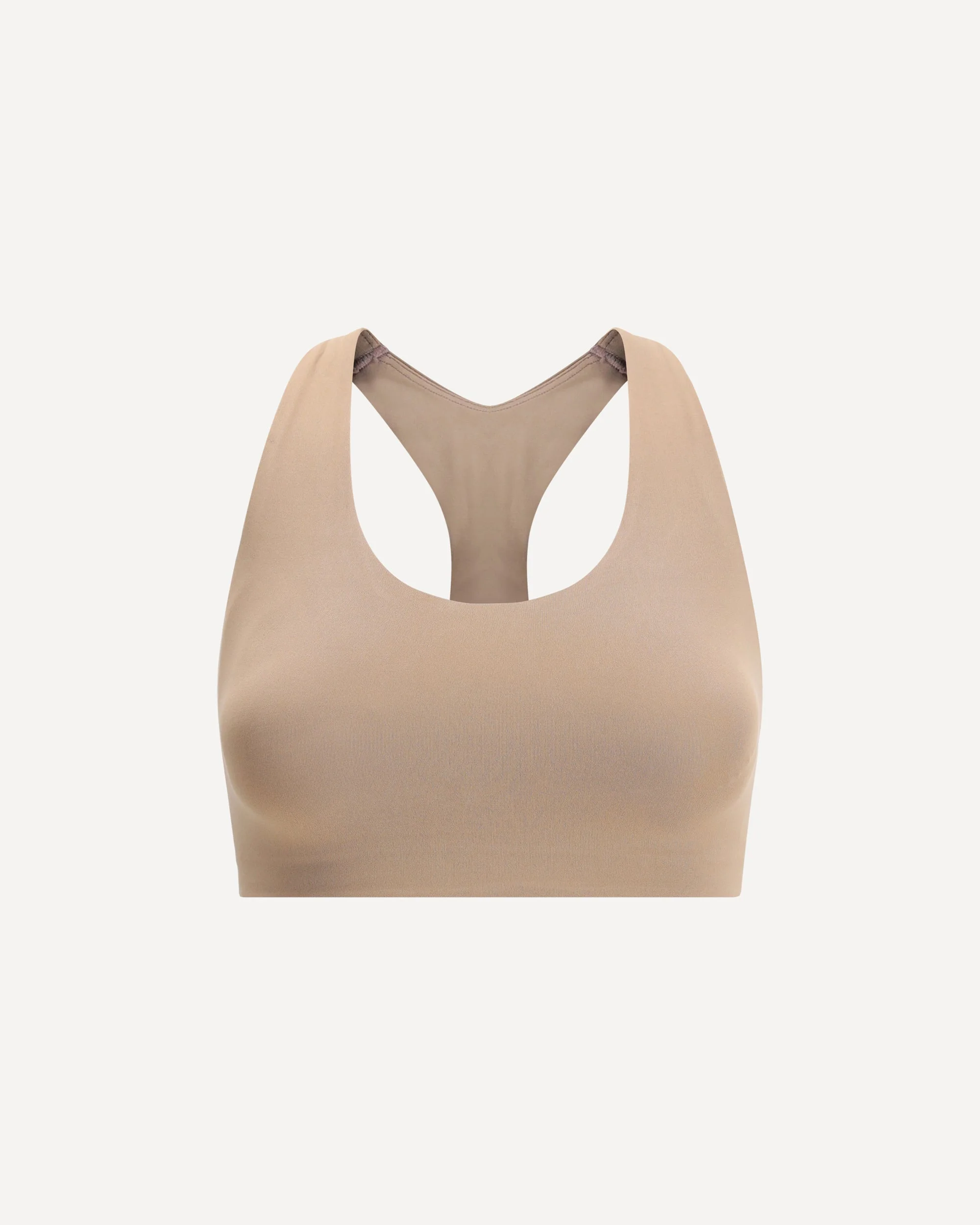 The NB Define Train Bra by New Balance is designed to combine functionality and comfort, delivering medium support during dynamic training sessions. Crafted with fast-drying NB Dry technology, it keeps the skin dry by wicking away moisture, while the elastic bottom band ensures support without restriction. Removable pads allow for customizable coverage, and the pullover design makes it practical and versatile, perfect for both workouts and everyday wear. DETAILS - Sku: WB51053EAS_EARTHSHADO - Season: AW25 - Fit: Slim - Composition: GENERAL 75% Recycled Polyester 25% Lycra - MADE IN SRI LANKA