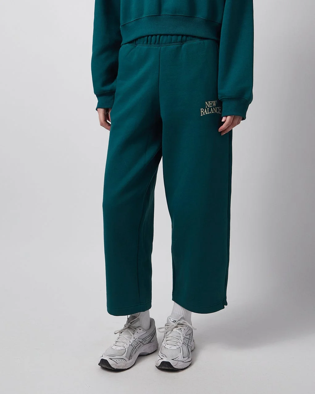 Trackside Fleece Barrel Pant from New Balance. These soft fleece pants are inspired by New Balance’s rich running heritage, combining sporty functionality with modern design. They feature a contemporary barrel silhouette that offers a relaxed yet refined fit, with thoughtful design details and a unique logo graphic. Size and Fit - Fits true to size, choose your usual size - The model is 175 cm tall and is wearing size S Specification - Article number - ID: 177995-031 - Brand: New Balance - Color: Green - Washing Instructions: Machine wash - Made of: 60% Cotton, 40% Recycled polyester