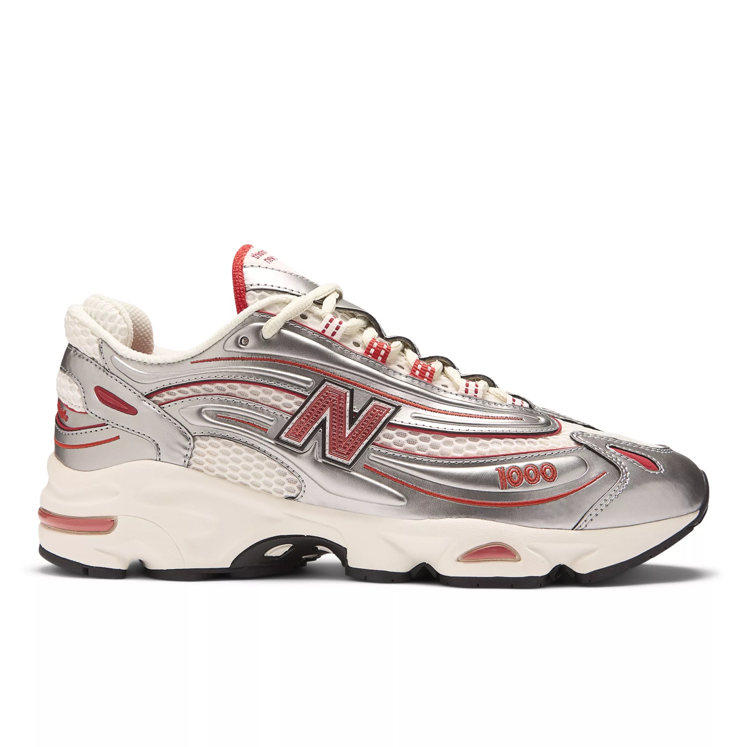 First released in 1999, the 1000 embodied the era's bold, futuristic styling with a streamlined, yet intricate design. While the recently reissued silhouette is getting updated in modern colorways, South Korean streetwear brand, thisisneverthat, looks back to the original M1000 for inspiration, applying the colors and materials reflective of that time. Reddish-orange synthetic trim and embroidered accents outline bold, metallic-colored overlays, while large-holed, white mesh underlays span across the upper. The segmented sole unit features ABZORB cushioning and a Stability Web midfoot shank, and co-branded details finish the collaborative design.