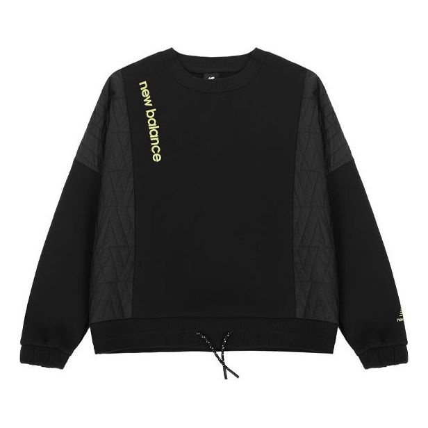 (WMNS) New Balance Solid Color Drawstring Round Neck Pullover Hoodie Black AWT14371-BK