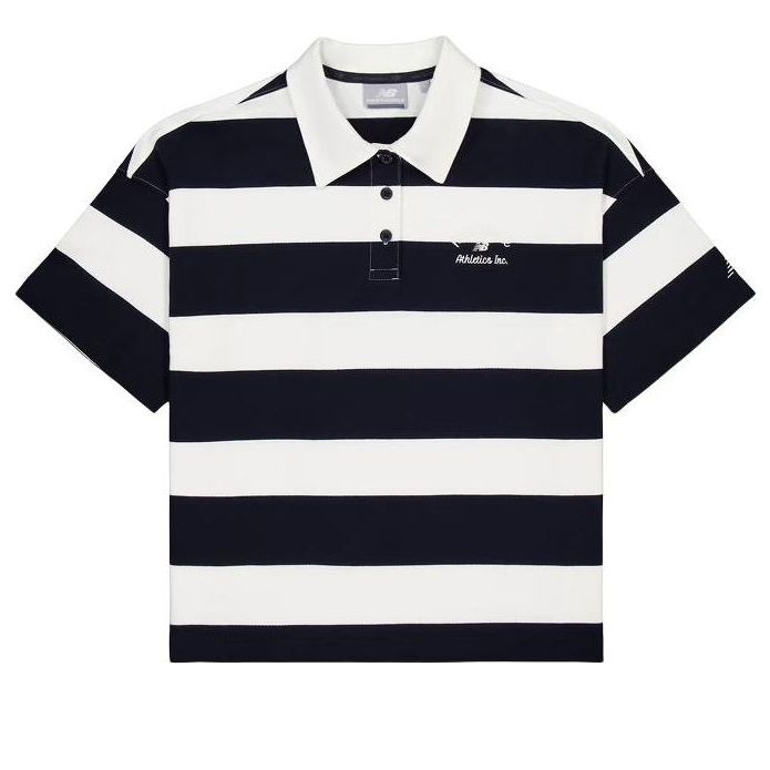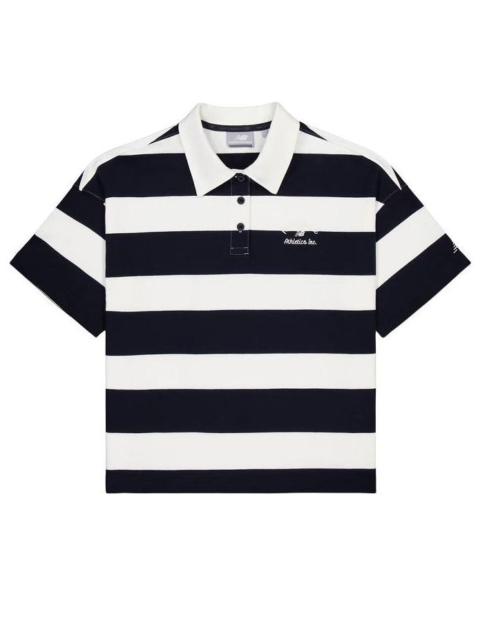 (WMNS) New Balance Striped Polo Shirt 'Black White' NFE22412-MIX