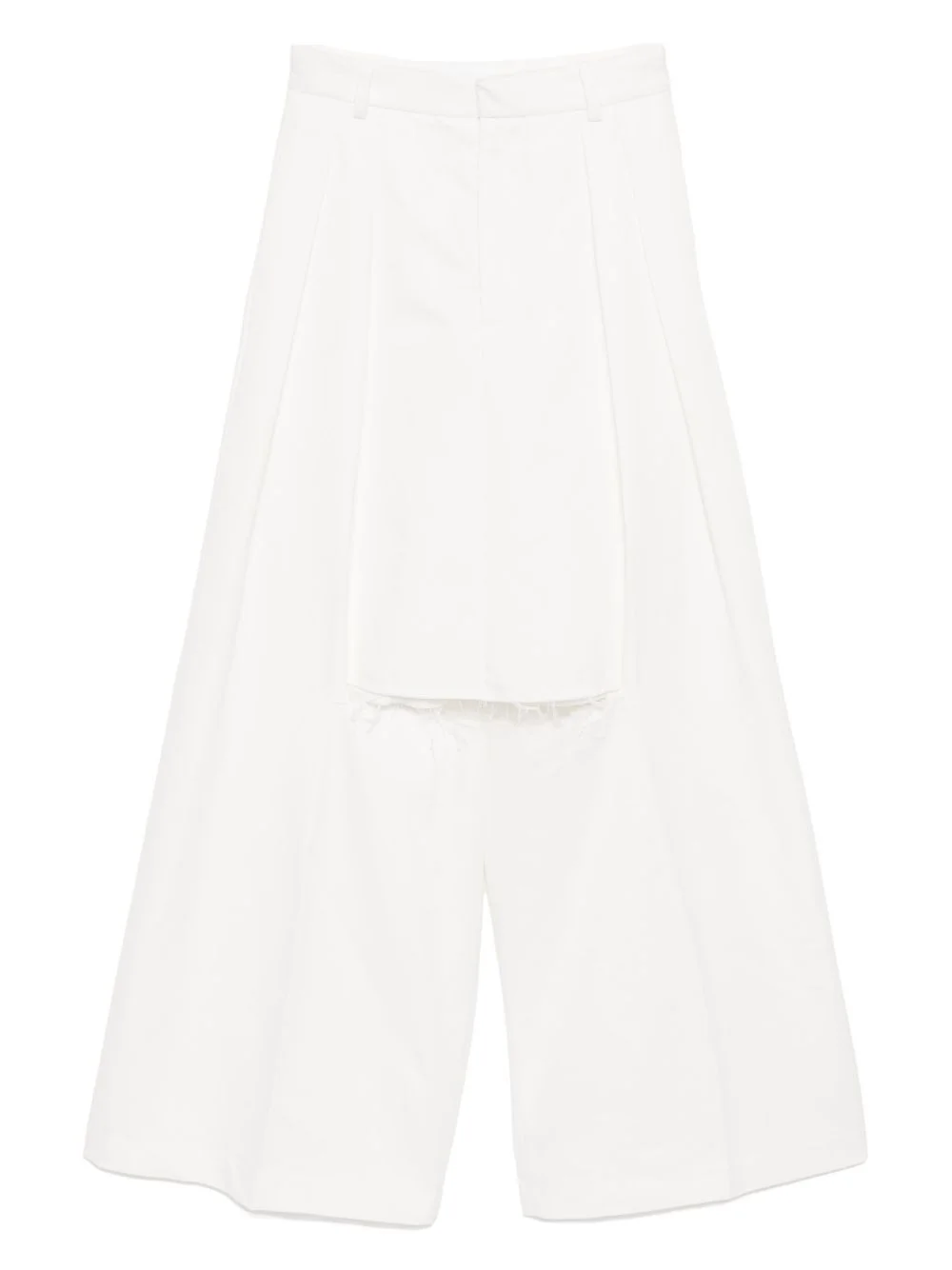 Brezza skirt trousers Highlights - Off-white - Concealed front button, hook and zip fastening - Belt loops - Two side inset pockets - Raw edge Made in Italy Composition Cotton 100% SIZE & FIT Model measurements Height 5 ft 10 in(1.77 m) Bust/Chest 30.7 in(78 cm) Hips 35.82 in(91 cm) Waist 21.25 in(54 cm) FittingInformation Designed with a wide-leg cut, these trousers allow for a close fit at the waist and offer a loose and roomy fit over the leg Made from a midweight non-stretch fabric Washing instructions Dry Clean Only