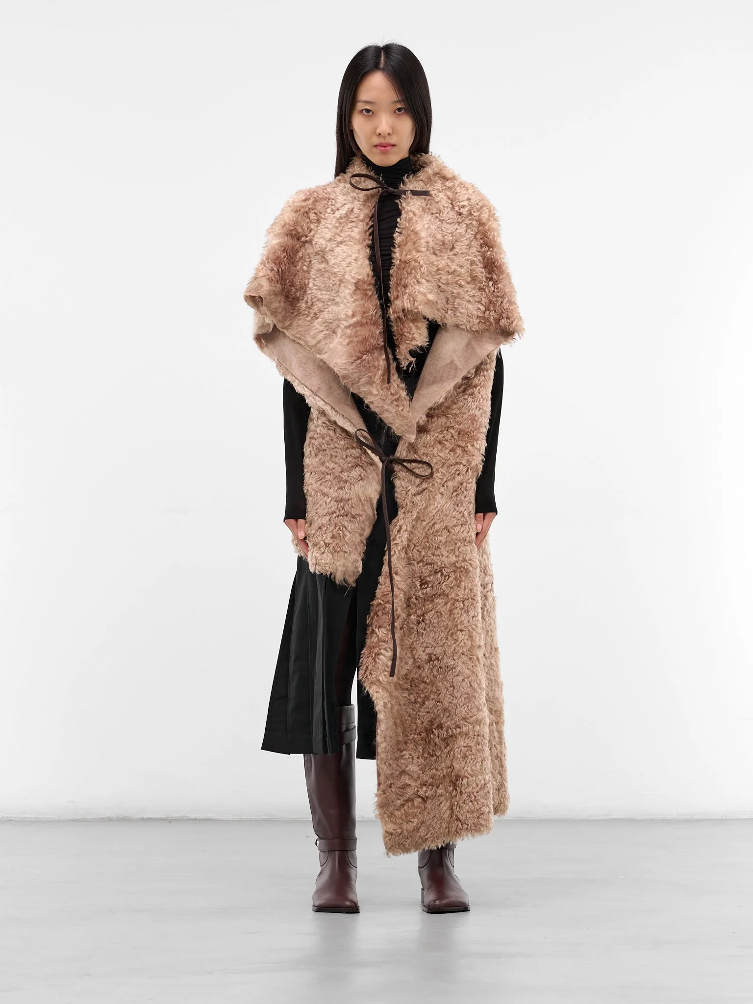 Featuring: • Relaxed fit • Stuoia cape design • Asymmetric design • Cut-outs and draping throughout • Front self-tie fastenings • Sleeveless with armholes • Asymmetric hem • Made in Italy • 80% Mohair 20% Silk • One size Model is 5'10" wearing size OS. Bust: 31” Waist: 22” Hips: 33”