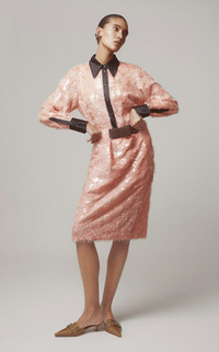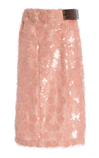Chimera Belted Sequin Midi Skirt pink