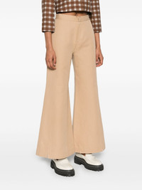 Tegola flared trousers Highlights - Beige - Cotton-silk blend - Gabardine weave - Seam detailing - Hook and zip fly fastening - Flared - Two side slit pockets - Straight hem Made in Italy Composition Cotton 98%, Silk 2% SIZE & FIT Model measurements Height 5 ft 10 in(1.77 m) Bust/Chest 33.07 in(84 cm) Hips 37 in(94 cm) Waist 24.8 in(63 cm) FittingInformation Designed with a wide-leg cut, these trousers allow for a close fit at the waist and offer a loose and roomy fit over the leg Made from a midweight non-stretch fabric This piece fits true to size – take your usual size