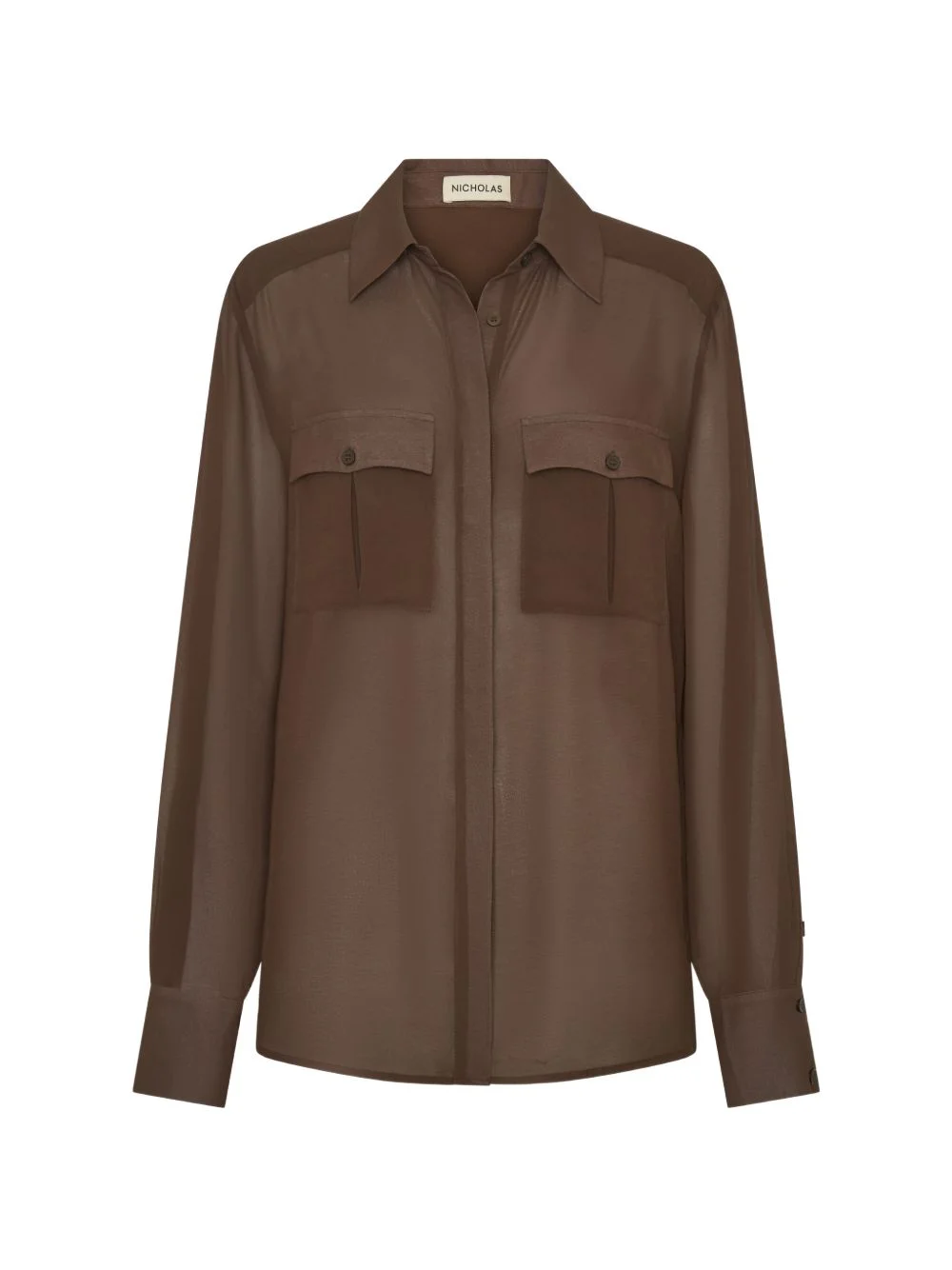 Chloe shirt Highlights - Dark brown - Front button fastening - Chest flap pockets - Buttoned cuffs - Long sleeves - Pointed collar Imported Composition Body: Polyester 100% Washing instructions Dry Clean Only