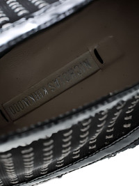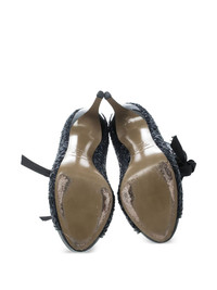 mesh booties Highlights - Black - Patent finish - Sequin embellishment - Mesh paneling - Peep toe - Ribbon laces - Condition: good. this previously owned and used item is in good condition with minimal signs of use. this may include fading of material or plating and scratches. Made in Italy Composition Outer: Sequin 100%, Mesh 100%, Patent Leather 100%, Satin 100% Lining: Leather 100% Sole: Leather 100% SIZE & FIT Measurement HEEL 4.52 in(11.5 cm)