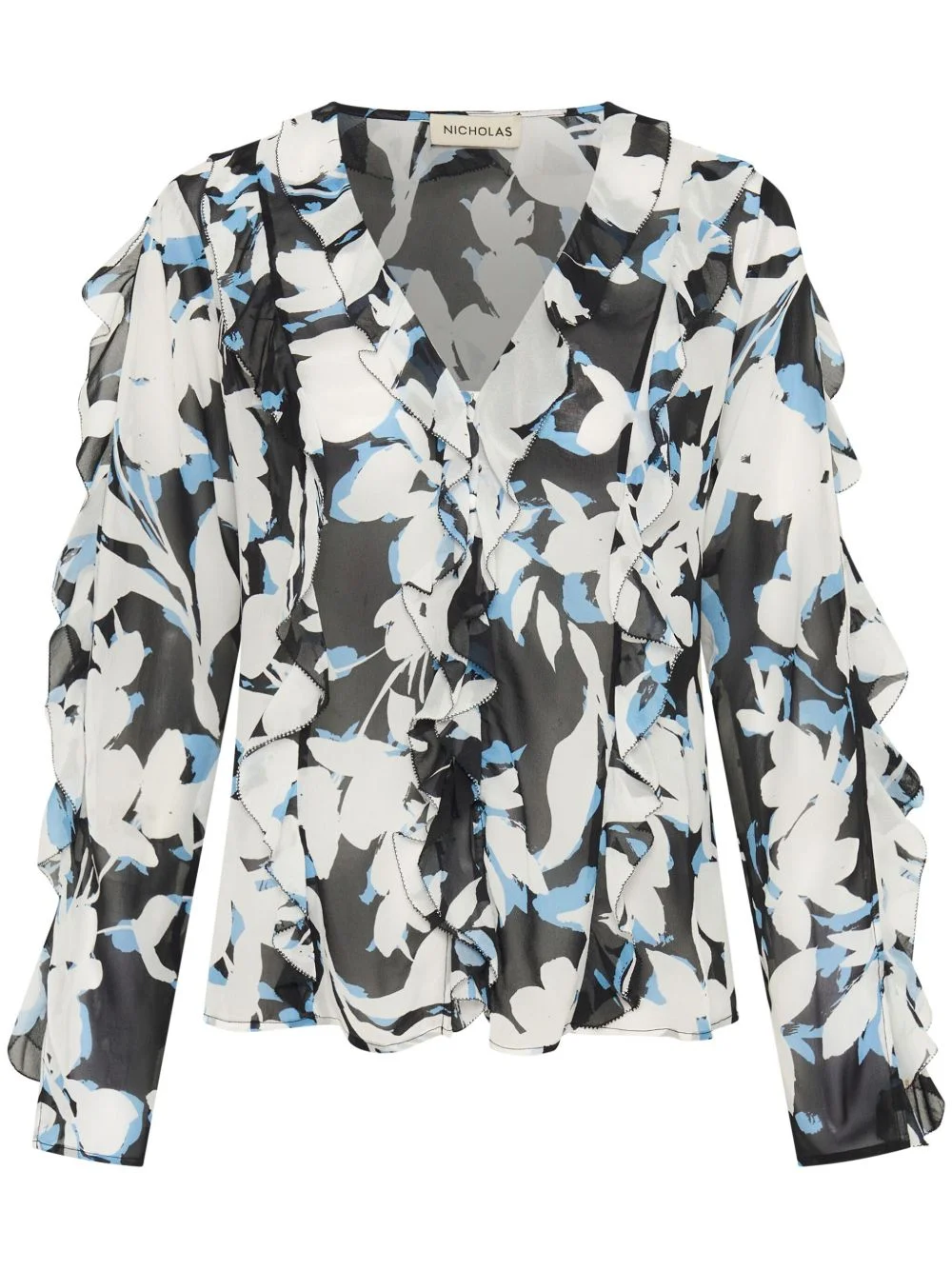 Amira bias ruffle top Highlights - Black - Blur print - Silk georgette fabric, not lined. - Self ruffle details throughout the body and sleeves. - Button closure at front and slit at sleeve opening. - Dry clean only. Imported Composition Silk 100% Washing instructions Dry Clean Only