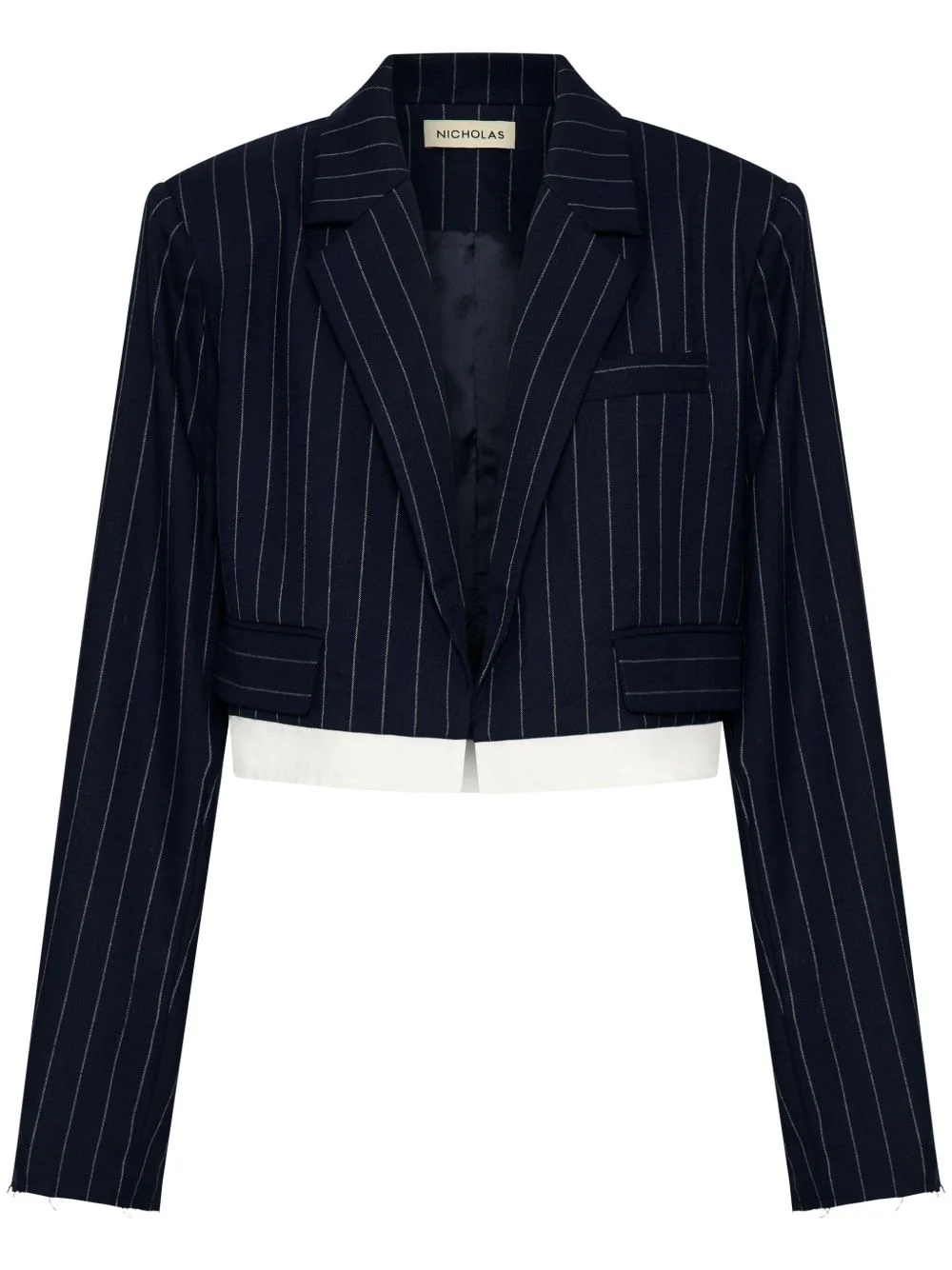 Delice jacket Highlights - Navy blue - Pinstripe pattern - Notched lapels - Shoulder pads - Long sleeves - Buttoned cuffs - Chest welt pocket - Front flap pockets - Raw-cut hem - Cropped Imported Composition Outer: Wool 45%, Polyester 27%, Viscose 25%, Spandex/Elastane 3% Lining: Viscose 100% Washing instructions Dry Clean Only