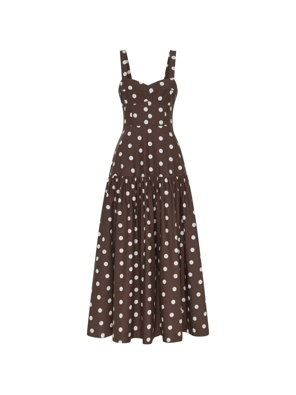 Valeria polka dot midi dress Highlights - Mocha chocolate - Polka dot pattern - Square neck - Square straps - Gathered detail - Zip fastening Imported Composition Outer: Linen/Flax 55%, Viscose 45% Lining: Cotton 100% Washing instructions Dry Clean Only