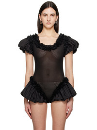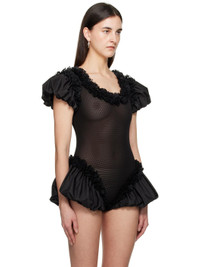 Sheer stretch nylon mesh and cotton-blend taffeta bodysuit. Ruffles throughout. · Scoop neck · Basque waist · Bubble hem · Puff sleeves Supplier color: Black Body 1: 90% polyamide, 10% elastane. Body 2: 70% cotton, 30% acetate. Body 3: 100% polyamide. Made in Lithuania 251126F358003