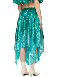 Sequinned polyester mesh skirt. · Tiered construction · Handkerchief hem · Concealed zip closure at back · Partial broadcloth lining Supplier color: Blue/Green Body: 100% polyester. Lining: 65% polyester, 35% cotton. Made in Lithuania 241126F092005
