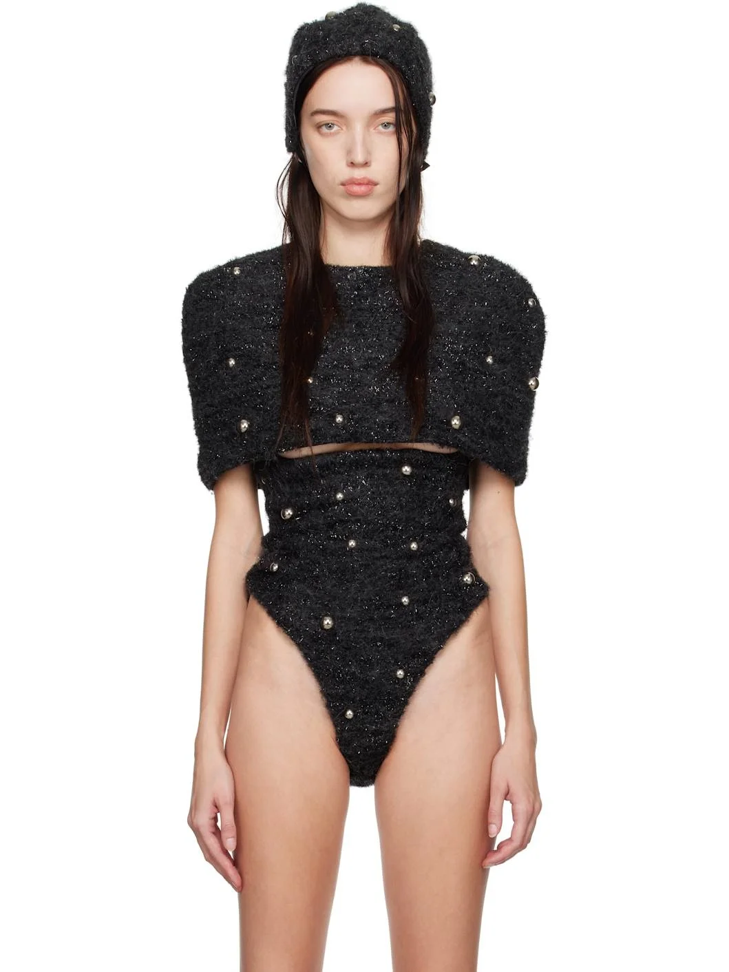 Brushed wool-blend cape. Graphic hardware throughout. · Crewneck · Press-stud closure at back Supplier color: Dark Grey Melange Body 1: 60% wool, 10% alpaca, 10% mohair, 10% cotton, 10% polyamide. Body 2: 100% polyester. Made in Denmark 242126F095001
