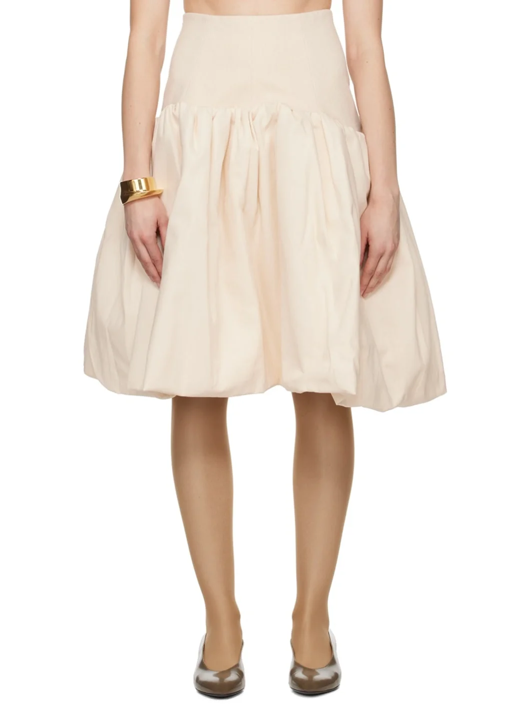 Stretch cotton twill and cotton canvas skirt. Gathering throughout. · Paneled construction · Concealed zip closure at back · Partial broadcloth lining Supplier color: White Body: 97% cotton, 3% elastane. Body 2: 100% cotton. Lining: 65% polyester, 35% cotton. Made in Lithuania 241126F092009