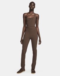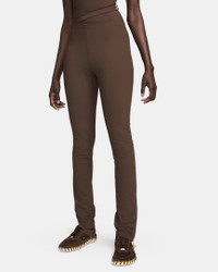 French fashion designer Simon Porte Jacquemus reunites with Nike to create a one-of-a-kind collection. Soft, smooth and stretchy—these posh pants keep you feeling comfortable and confident. Zippers from the knee down let you switch up your style, while the strappy waistband is partially separated for an asymmetrical look. Co-branded brushed metal hardware, including a vertical Swoosh zipper pull, adds a polished finish. Product Details - 71% Nylon/29% Spandex - Machine wash - Imported - Shown: Cacao Wow - Style: DR5269-259 SIZE & FIT Standard fit: easy and traditional Fl length: hits below ankle