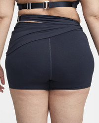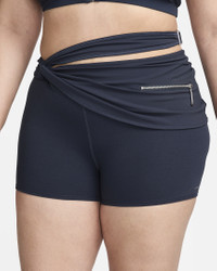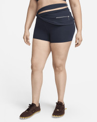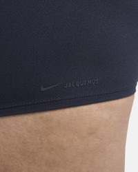 French fashion designer Simon Porte Jacquemus reunites with Nike to create a one-of-a-kind collection. Soft, smooth and stretchy—these modish shorts keep you feeling comfortable and confident. The wraparound waist includes a small pocket and metal hardware, adding a polished and practical finish to your asymmetrical look. Product Details - Body: 70% Nylon/30% Spandex. Overlay/Lining: 71% Nylon/29% Spandex. - Machine wash - Imported - Shown: Dark Obsidian - Style: FJ3266-475 SIZE & FIT Model is wearing size M and is 5′9″175cm Standard fit: easy and traditional