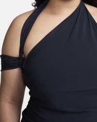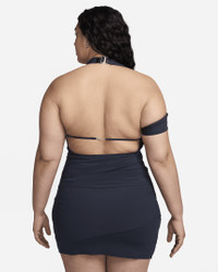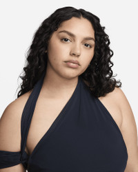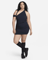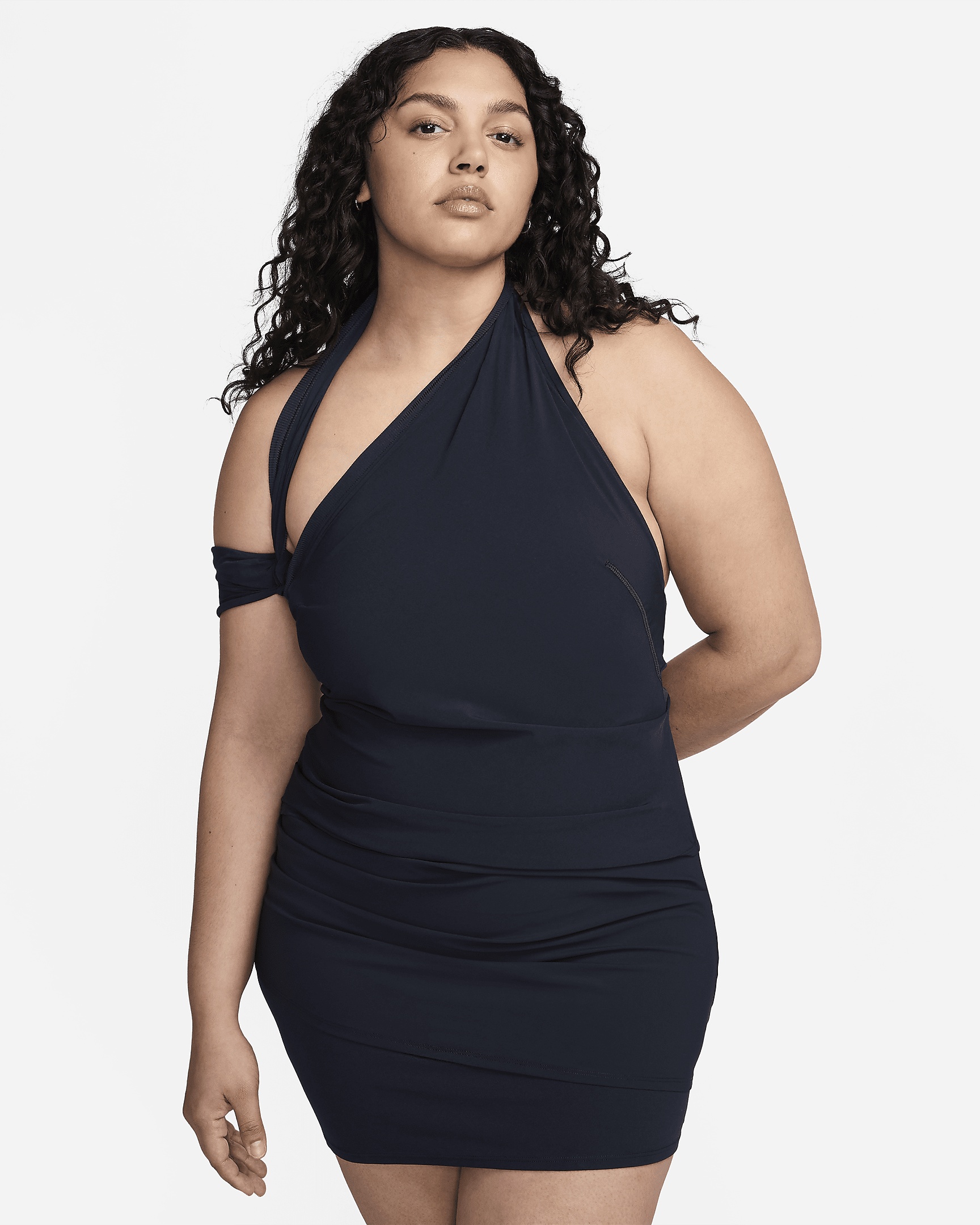French fashion designer Simon Porte Jacquemus reunites with Nike to create a one-of-a-kind collection. Soft, smooth and stretchy—this statement dress has everything you need for form-fitting style. The length hits at mid-to-upper thigh, while the strappy design creates an asymmetrical look. Co-branded brushed metal hardware, including a metal Swoosh closure, adds a polished finish. Benefits - Brushed silver details round out your elevated look. - Lightweight fabric moves sweat away from your skin for quick evaporation, helping you stay dry and comfortable. Product Details - Body: 84% Polyester/16% Spandex. Middle Panel: 71% Nylon/29% Spandex. Lower Panel/Lining: 70% Nylon/30% Spandex. - Machine wash - Imported - Shown: Dark Obsidian - Style: FJ3140-475 SIZE & FIT Model is wearing size L and is 5′9″175cm Standard fit: easy and traditional