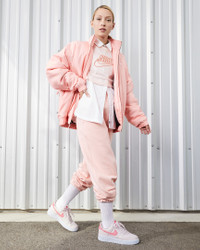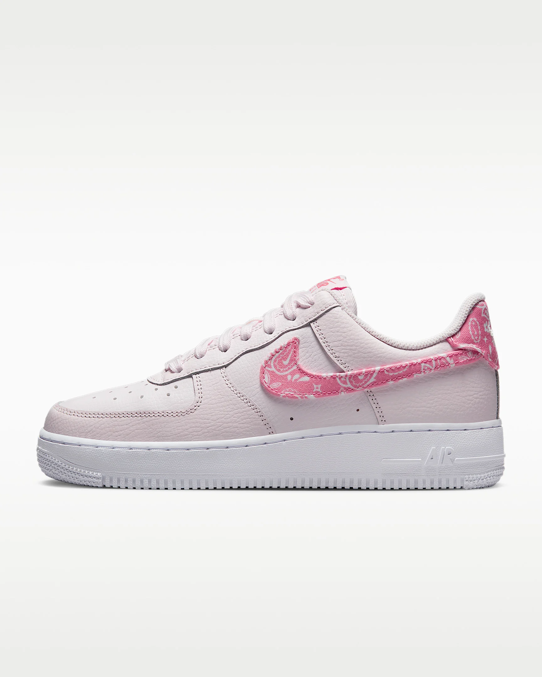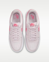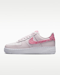 You'll score major points in this legendary classic. Crossing hardwood comfort with off-court flair, this hoops original pairs crisp leather with playful paisley-print accents for nothing-but-net style. Plus, hidden Nike Air units and durable ‘80s construction add the comfort you’ve come to expect from the AF1. Benefits - Real and synthetic leather add durability and structure. - Originally designed for performance hoops, Nike Air cushioning delivers lasting comfort. - Padded, low-cut collar looks sleek and feels great. - Rubber outsole with classic pivot circle pattern adds traction and durability. Product Details - Shown: Pearl Pink/White/Pearl Pink/Coral Chalk - Style: FD1448-664 SIZE & FIT Fits large; we recommend ordering a half size down