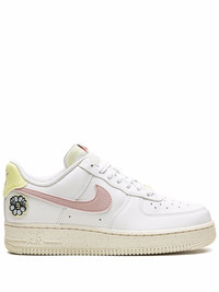 Air Force 1 Low Next Natu "Flower Power" sneakers Nike's Next Nature AF1 updates the classic sneaker with at least 20% recycled materials and pastel colours. This pair is crafted from leather in a white hue and accented with a peachy pink pastel Swoosh and light-yellow heel tabs. Embroidered flower and butterfly patches can be found on the lateral heels for an extra pop of personality to this playful springtime colourway. Imported Composition Leather 100%