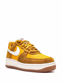 Air Force 1 '07 SE "First Use" sneakers Released in 1982, the Nike Air Force 1 has since served as a canvas for artists and designers. Now, designed in a white and yellow colour scheme, the versatility of these '07 sneakers is mixed with extreme comfort because of their Nike Air cushioning in the heel, while a gold-tone logo plaque on the laces finishes the look. Imported Composition Leather 100%