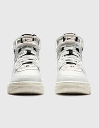 - Nike - Nike Air Force 1 High Utility 2.0 - Leather upper - Lace-up closure with ankle strap at collar - Padded collar - Air cushioning - Rubber outsole - Color: Summit White/Sail-Black/Summit White - Material: Leather, Rubber - See more Sneakers and Shoes