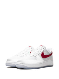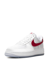 Air Force 1 Low '07 "Satin White/Varsity Red" sneakers The Nike Air Force 1 Low '07 "Satin White/Varsity Red" sneakers feature a unique and eye-catching combination of white and red, with a satin finish that adds a touch of elegance to the shoe's overall design. They're highlighted with branding details on the tongue, sides and heel. Highlights - White - Satin finish - Signature swoosh logo detail - Embroidered logo to the rear - Round toe - Front lace-up fastening - Logo patch at the tongue - Branded insole - Rubber sole - These styles are supplied by a premium sneaker marketplace. stocking only the most sought-after footwear, they source and curate some of the most hard to find sneakers from around the world. Imported Composition Other fibres 100% SIZE & FIT Measurement HEEL 1.18 in(3 cm) Sole height 0.98 in(2.5 cm)
