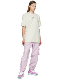 Low-top Flyknit sneakers in purple, pink and blue. Felted trim in white throughout. Round toe. Lace-up closure in white. Textile logo patch in pink at padded tongue. Padded collar. Embossed logo at heel tab. Felted Swoosh appliqué in white at sides. Textured foam rubber midsole in off-white featuring multicolor speckled detailing. Tonal logo embossed at heel. Treaded rubber outsole in off-white and green. Supplier color: Fuchsia/Pink blast/White Upper: textile. Sole: rubber.