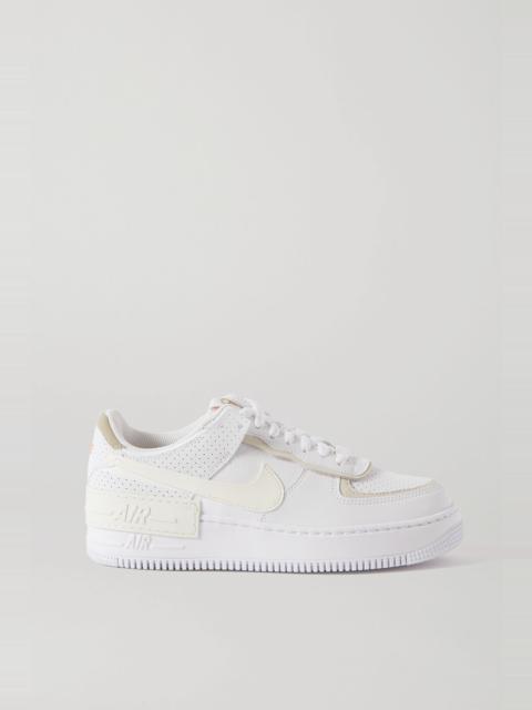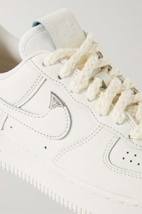 EDITORS'NOTES Nike's iconic 'Air Force 1' sneakers debuted over three decades ago and remain just as popular today. Modeled after traditional basketball styles, this low-top '07' pair is made from supple leather in an all-white colorway and has perforated toes, cushioned footbeds and bouncy rubber soles. Wear yours with everything from dresses to tailoring. SIZE & FIT Nike follows its own size guide, please refer to below: - US 5 = UK 2.5/ EU 35.5 - US 5.5 = UK 3/ EU 36 - US 6 = UK 3.5/ EU 36.5 - US 6.5 = UK 4/ EU 37.5 - US 7 = UK 4.5/ EU 38 - US 7.5 = UK 5/ EU 38.5 - US 8 = UK 5.5/ EU 39 - US 8.5 = UK 6/ EU 40 - US 9 = UK 6.5/ EU 40.5 - US 9.5 = UK 7/ EU 41 - US 10 = UK 7.5/ EU 42 - US 10.5 = UK 8/ EU 42.5 - US 11 = UK 8.5/ EU 43 - US 11.5 = UK 9/ EU 44 - US 12 = UK 9.5/ EU 44.5 - Fits true to size, take your normal size DETAILS & CARE - Rubber sole measures approximately 35mm/ 1.5 inches - White leather (Calf) - Lace-up - Designer color: Sail/ Metallic Silver/ Tawny - Nike follows its own size guide, therefore the size stated on the box will differ from the one provided in our size chart. To receive your correct fit, please refer to Size & Fit notes