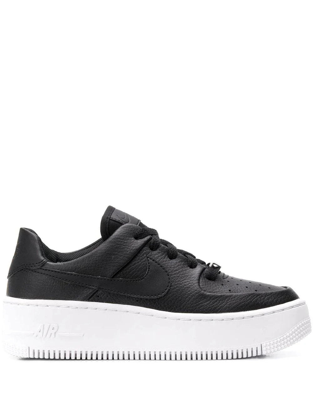 Nike Air Force 1 Sage sneakers Black Nike Air Force 1 Sage sneakers from Nike featuring an almond toe, decorative perforations, a lace-up front fastening, a brand embossed tongue, a padded ankle, a ridged rubber sole and a silver-tone AF1 plaque on the toe cap. Imported Composition Calf Leather 100% SIZE & FIT FittingInformation This piece fits small – take one size up Measurement HEEL 1.77 in(4.5 cm) Sole height 1.37 in(3.5 cm)