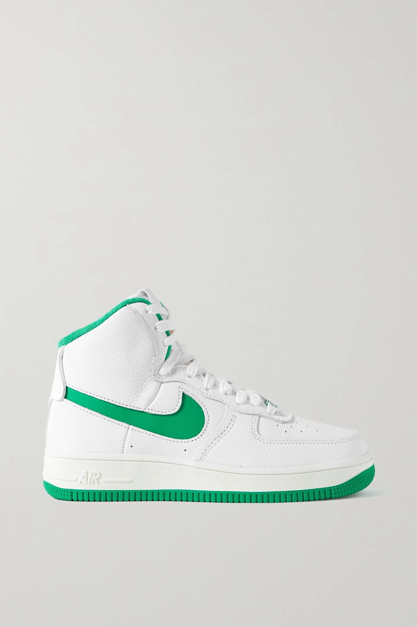 EDITORS'NOTES Since they debuted in '82, Nike's 'Air Force 1' sneakers have been re-imagined over 2,000 times, and each iteration is just as cool as the last. This 'Sculpt' pair is made from supple leather and features all the signature details, minus the ankle straps. The green 'Swoosh' matches the tread and terry lining. SIZE & FIT These sneakers are men’s US sizing, please refer to below: - Men’s US 4 = Women’s US 5.5/ UK 3.5/ EU 36 - Men’s US 4.5 = Women’s US 6/ UK 4/ EU 36.5 - Men’s US 5 = Women’s US 6.5/ UK 4.5/ EU 37.5 - Men’s US 5.5 = Women’s US 7/ UK 5/ EU 38 - Men’s US 6 = Women’s US 7.5/ UK 5.5/ EU 38.5 - Men’s US 6.5 = Women’s US 8/ UK 6/ EU 39 - Men’s US 7 = Women’s US 8.5/ UK 6/ EU 40 - Men’s US 7.5 = Women’s US 9/ UK 6.5/ EU 40.5 - Men’s US 8 = Women’s US 9.5/ UK 7/ EU 41 - Men’s US 8.5 = Women’s US 10/ UK 7.5/ EU 42 - Men’s US 9 = Women’s US 10.5/ UK 8/ EU 42.5 - Men’s US 9.5 = Women’s US 11/ UK 8.5/ EU 43 - Men’s US 10 = Women’s US 11.5/ UK 9/ EU 44 - Men’s US 10.5 = Women’s US 12/ UK 9.5/ EU 44.5 - Men’s US 11 = Women’s US 12.5/ UK 10/ EU 45 - Men’s US 11.5 = Women’s US 13/ UK 10.5/ EU 45.5 - Men’s US 12 = Women’s US 13.5/ UK 11/ EU 46 - Men’s US 12.5 = Women’s US 14/ UK 11.5/ EU 47 - Men’s US 13 = Women’s US 14.5/ UK 12/ EU 47.5 - Fits true to size, take your normal size - Packaging reflects both men’s and women’s sizing DETAILS & CARE - Rubber sole measures approximately 35mm/ 1.5 inches - White and green leather - Lace-up front - Designer color: White/ Stadium Green/ Sail - Nike follows its own size guide, therefore the size stated on the box will differ from the one provided in our size chart. To receive your correct fit, please refer to Size & Fit notes