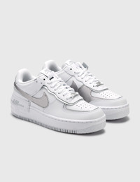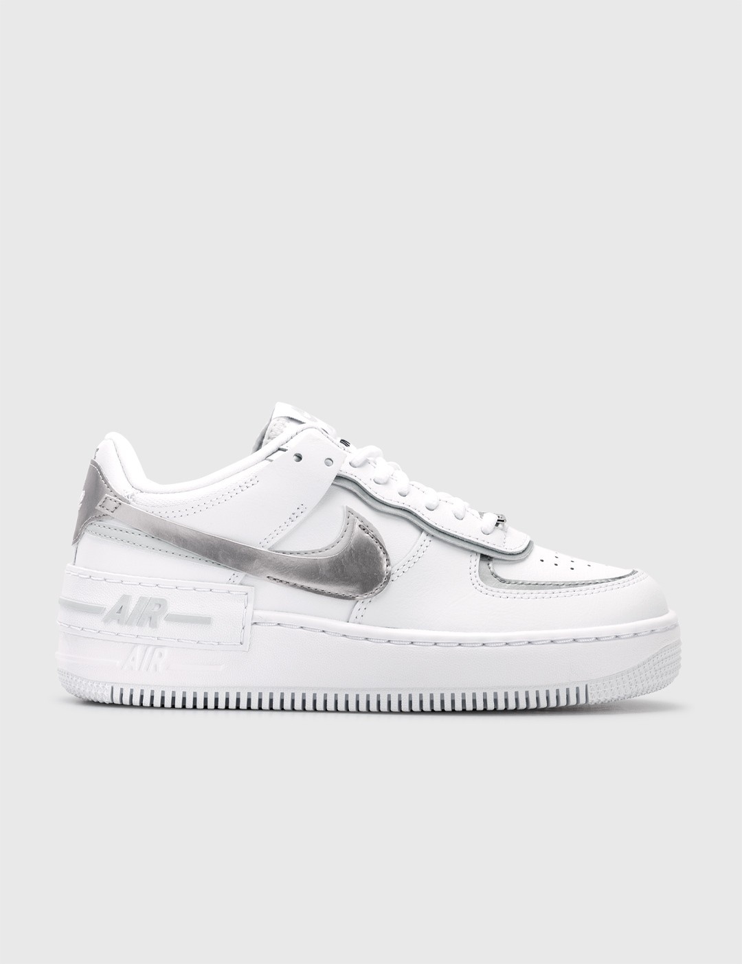 - Nike - Nike Air Force 1 Shadow - Leather upper - Layered design - Perforated toe - Lace-up closure - Foam midsole - Rubber outsole - Color: White/Metallic Silver - Material: Leather, Rubber - See more Sneakers and Shoes
