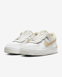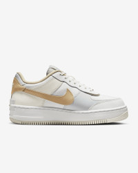 Make every step unique. These kicks put a playful twist on a hoops icon by doubling up on everything you love about the AF1. Layered materials like linen-evoking textiles and synthetic leather pair with an exaggerated midsole and a pop of pastels to bring you double the style. Benefits - With 2 eyestays, 2 mudguards and 2 Swoosh logos, you get a layered aesthetic with double the branding. - Stitched leather overlays add durability and texture to the heritage look. - Originally designed for performance hoops, the Nike Air cushioning adds lasting comfort. Product Details - Foam midsole - Shown: Summit White/Wolf Grey/Pure Platinum/Sesame - Style: DV7449-100