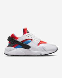 When it fits this good and looks this great, it doesn’t need a Swoosh. With its stretchy, “hug your foot” fabric on the upper, Nike Air cushioning and futuristic heel cage, the Huarache is bragging rights for your feet. Pops of red, white and blue provide a fresh update to this street-level favorite. Benefits - Originally designed for performance running, Nike Air cushioning delivers lasting comfort. - Plush foam midsole feels soft and springy. - Cushioned inner sleeve stretches to your foot for a personalized fit. - Rubber outsole adds durability and traction. Product Details - Variable-width lacing - Huarache emblem on tongue - Shown: White/Bright Crimson/Photo Blue/Black - Style: DV2220-100