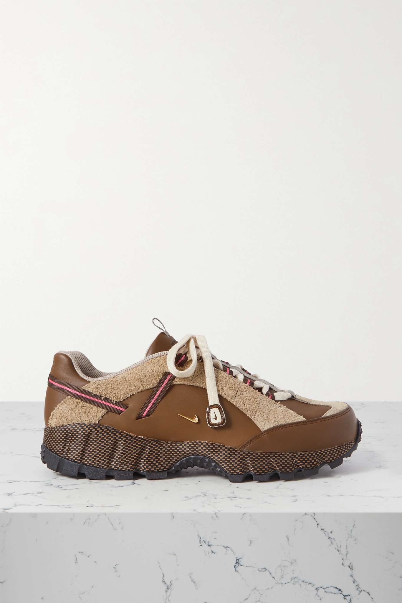 EDITORS'NOTES Simon Porte Jacquemus reinterprets Nike's rugged 'Humara' sneakers, one of his personal favorites, as part of the coveted collaboration with the sportswear giant. Grounded by chunky rubber outsoles and air cushioning, this version is made from leather and suede in earthy neutrals. They're threaded with a single lace from the original hiking design and embellished with a mini gold 'Swoosh'. SIZE & FIT - DETAILS & CARE - Rubber sole measures approximately 40mm/ 1.5 inches - Brown leather, beige suede, light-brown and black rubber - Lace-up front - Designer color: Ale Brown/ Gold Ale Brown - Nike follows its own size guide, therefore the size stated on the box will differ from the one provided in our size chart. To receive your correct fit, please refer to Size & Fit notes