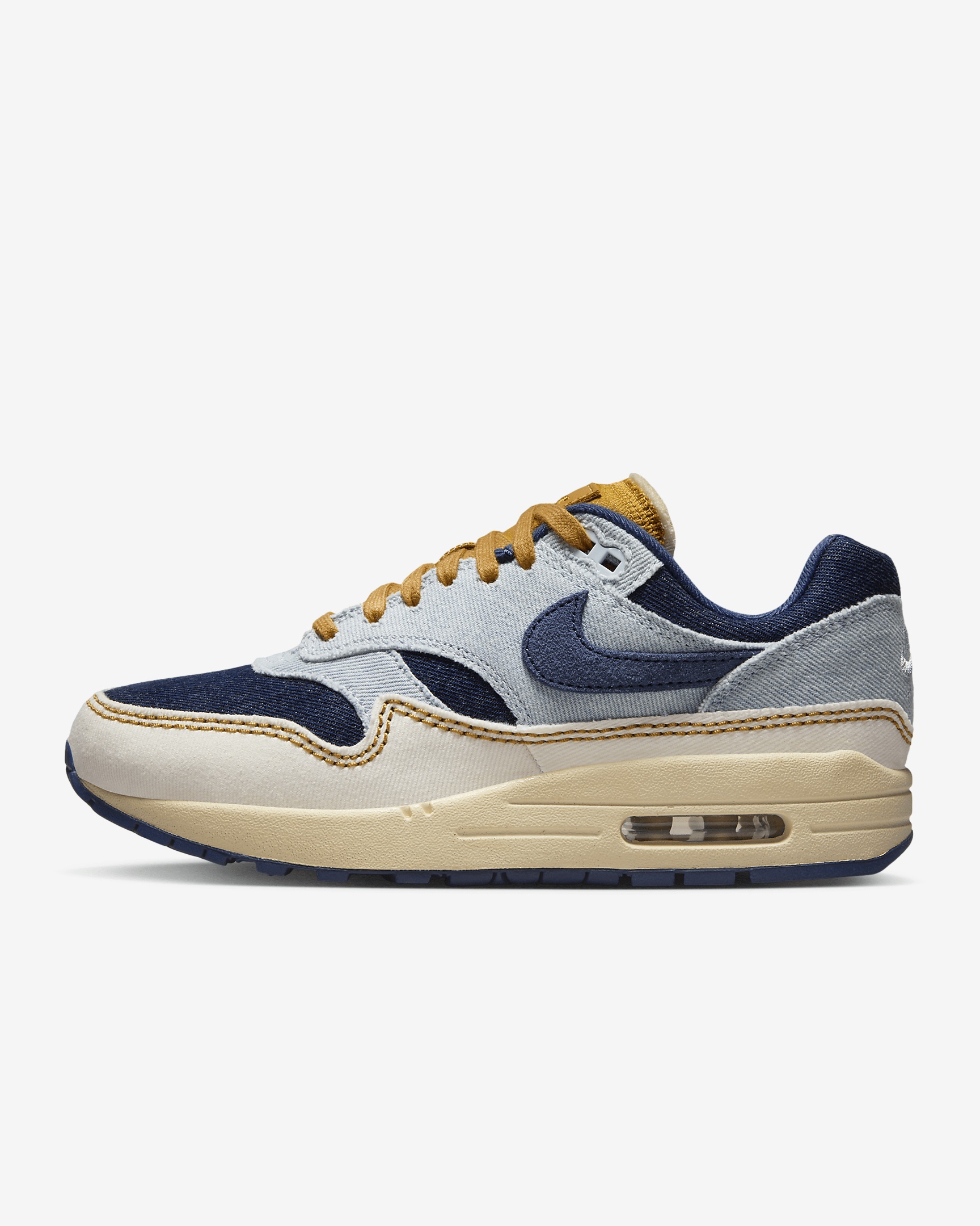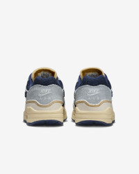 Meet the leader of the pack. Inspired by French architecture, savored in sport and celebrated by fashion fans, this is the first shoe in the family to reveal Air to the world. With a fast-paced look, tried-and-true cushioning and classic wavy mudguard, it’s no wonder it’s reigned supreme since 1987. Benefits - Originally designed for performance running, visible Max Air unit provides heritage style and all-day cushioning. - Padded, low-cut collar looks sleek and feels comfortable. - Wavy mudguard and pill-shaped Air window keep classic look. - Rubber outsole gives you traction and durability. Product Details - Shown: Aura/Pale Ivory/Pale Vanilla/Midnight Navy - Style: FQ8900-440