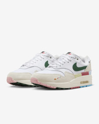 Stop and smell the roses in these special edition kicks. In honor of the China women’s national football team (aka Steel Roses). we've added design details like romantic hues, “All Petals United” stamped on the insole and a rose motif. With a fast-paced look, tried-and-true cushioning and classic wavy mudguard, it’s no wonder the Air Max 1 reigns supreme since 1987. Benefits - Upper combines textile, suede and leather for durability that's made for everyday wear. - Originally designed for performance running, visible Max Air unit provides all-day cushioning. - Rubber outsole gives you traction and durability. - Padded, low-cut collar looks sleek and feels great. - Shown: White/Sail/Light Bone/Fir - Style: FQ0256-131