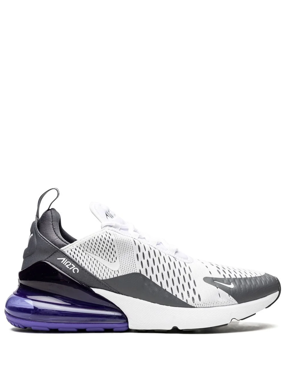 Air Max 270 sneakers Boasting a futuristic mesh-panelled design, Nike's Air Max 270 looks to the Air Max 180 and the Air Max 93 for inspiration. Presented here in white, grey and violet hues, the design offers an eye-catching finish with supportive Air cushioning underfoot. Imported Composition Outer: Polyester 100%, Polyamide 100% Sole: Rubber 100% Lining: Polyester 100%