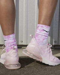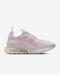 Nike's first lifestyle Air Max brings you style, comfort and big attitude in the Nike Air Max 270. The design draws inspiration from Air Max icons, showcasing Nike's greatest innovation with its large window and fresh array of colors. Benefits - The Max Air 270 unit delivers unrivaled, all-day comfort. - Woven and synthetic fabric on the upper provides a lightweight fit and airy feel. - The foam midsole feels soft and comfortable. - The stretchy inner sleeve and booty-like construction creates a personalized fit. - Rubber on the outsole adds traction and durability. Product Details - Mesh details for an airy feel - Synthetic and textile - Pull tab - Shown: Pink Foam/Pink Foam/Pearl Pink/Pink Rise - Style: AH6789-605 SIZE & FIT Fits small; we recommend ordering a fl size up