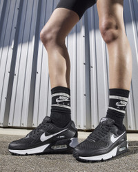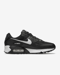 Nothing as fly, nothing as comfortable, nothing as proven—the Nike Air Max 90 stays true to its roots with the iconic Waffle sole, stitched overlays and classic TPU accents. Fresh details give a modern look while Max Air cushioning adds comfort to your journey. Benefits - Originally designed for performance running, the Max Air unit in the heel adds unbelievable cushioning. - Padded, low-top collar looks sleek and feels great - Rubber Waffle outsole adds a heritage look, traction and durability. - Stitched overlays and TPU accents on the heel and eyestays add durability, comfort and the iconic '90s look you love. Product Details - Shown: Black/Black/White - Style: DH8010-002 SIZE & FIT Fits small; we recommend ordering a half size up