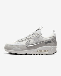 The Nike Air Max 90 Futura reimagines the icon of Air through your eyes—from design to testing to styling. Sawtooth edging around the toe and a partially floating Swoosh deliver skillfully crafted luxury. Plush padding around the ankle mixes with trusted Air cushioning to bring you first-class comfort. It's playful, comfortable, sporty and whatever else you want it to be. More Benefits - Padded, low-top collar looks sleek and feels great. - Rubber Waffle outsole adds a heritage look, traction and durability. - Super plush midsole keeps the comfort and '90s look you love. Product Details - Pull tabs on heel and tongue - Shown: Pure Platinum/Photon Dust/Black/Metallic Silver - Style: DM9922-004 SIZE & FIT Fits small; we recommend ordering a half size up