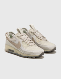 - Nike - Air Max Terrascape 90 - Low top sneaker - Round toe - Lace-up closure - Textile upper - Signature swoosh logo appliqué - Branded tongue - Pull tabs at heel and tongue - Air cushioning unit - Semi-translucent, Crater Foam midsole - Treaded, Crater Foam outsole - Color: Light Bone/Rattan/Cashmere - Material: 100% Textile; 100% Crater Foam