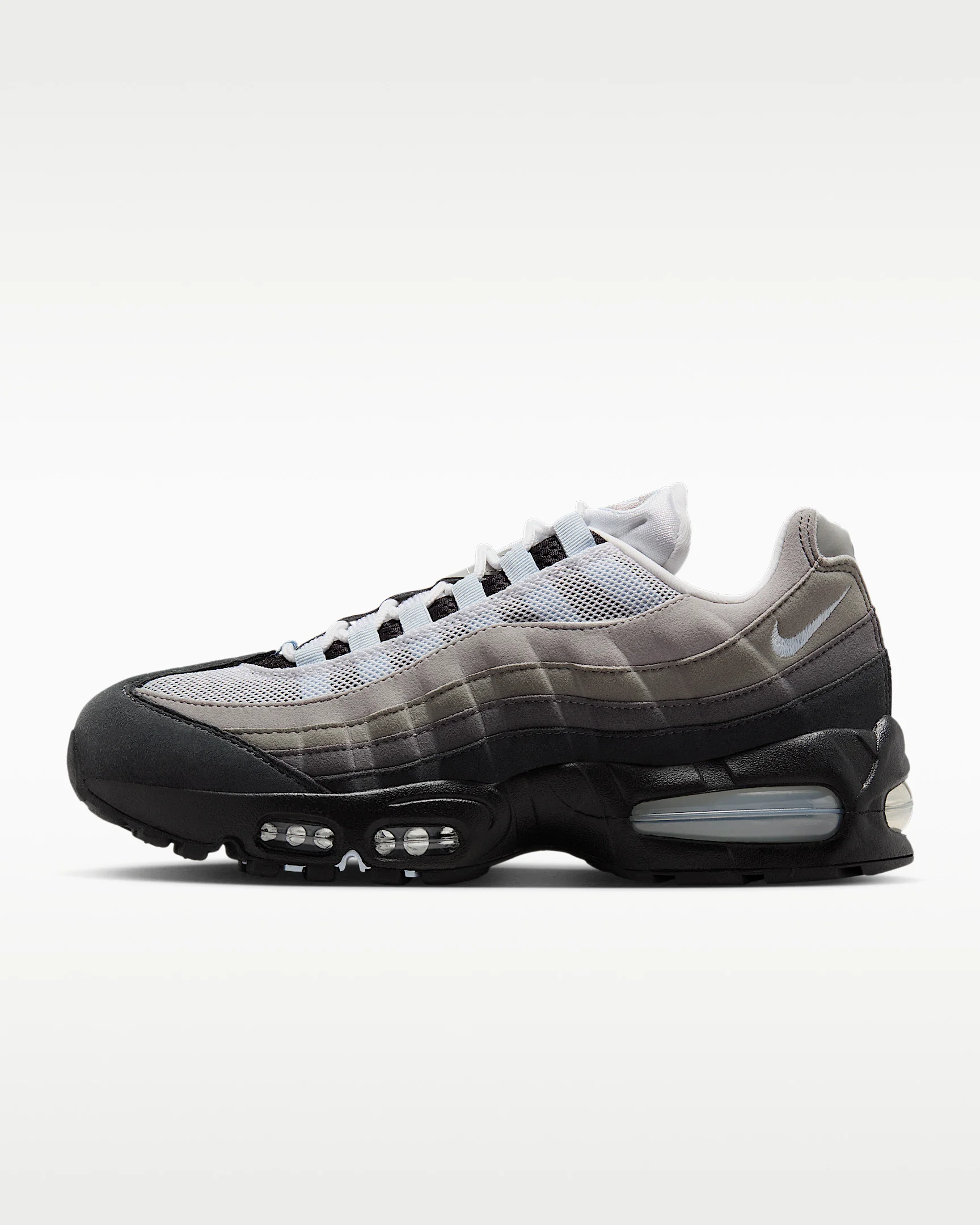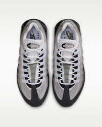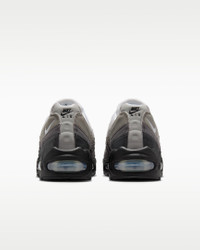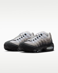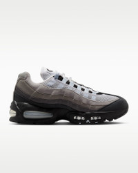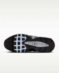The Air Max 95 originally takes inspiration from the human anatomy, leading to its distinctive wavy design. This version pairs mixed materials and visible Max Air cushioning for a layered look with unbelievable comfort. Benefits - Upper draws inspiration from the human body—the midsole represents the spine, graduated panels are the muscles and the laces are the shoe’s ribs. - Textile and synthetic leather create a layered look built to last. - Visible Max Air cushioning provides lightweight cushioning. - Flex grooves in the midsole/outsole let you move freely. Product Details - Foam midsole - Rubber outsole - Shown: Black/White/Medium Grey/Blue Tint - Style: HJ5996-002