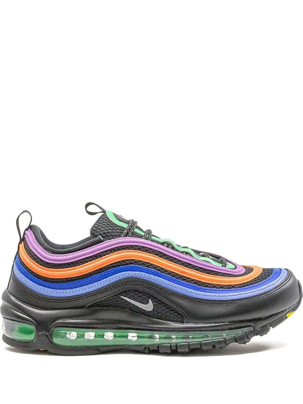 Air Max 97 "Multicolor" sneaker Legends never fade, they live on forever. And these black, silver-tone and electro green Air Max 97 sneakers from Nike aren't going anywhere. You and these sneakers are going to stay around for a while. Imported Composition Leather 100%