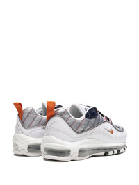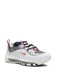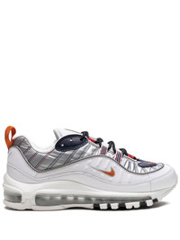 Air Max 98 Premium sneakers First released in 1998, Nike's Air Max 98 sneakers are re-issued twenty years after the original in a white and silver-tone colourway. Designed with modern consumers in mind, the silhouette maintains the 97's heel-to-toe visible Air Unit which runs the length of the rubber outsole and boasts a leather-trimmed mudguard and tonal stitched panelling around the forefoot. They're detailed with Nike's iconic Swoosh logo at the toe and an off-centre logo patch at the tongue. Highlights - White/silver-tone - Leather - Signature swoosh logo detail - Round toe - Front lace-up fastening - Pull-tab at the heel - Branded insole - Rubber sole with max air cushioning - These styles are supplied by a premium sneaker marketplace. stocking only the most sought-after footwear, they source and curate some of the most hard to find sneakers from around the world. Imported Composition Leather 100% SIZE & FIT Measurement HEEL 1.37 in(3.5 cm) Sole height 0.78 in(2 cm)