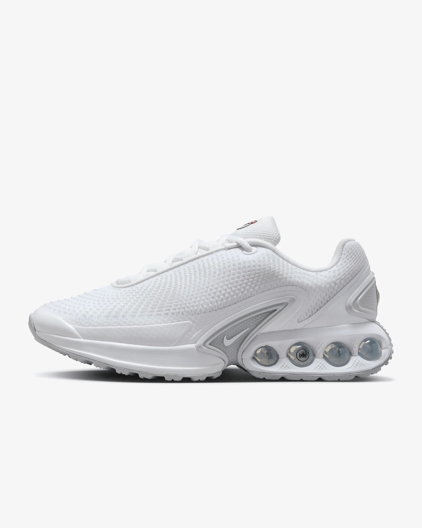 Say hello to the next generation of Air technology. The Air Max Dn features our Dynamic Air unit system of dual-pressure tubes, creating a reactive sensation with every step. This results in a futuristic design that’s comfortable enough to wear from day to night. Go ahead—Feel the Unreal. Product Details - Glossy accents - Foam midsole - Rubber outsole - Shown: White/White/Metallic Silver/White - Style: FJ3145-102