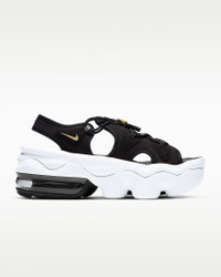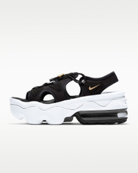 Heat up the streets in the Nike Air Max Koko Sandal. Designed for women, this pinnacle platform-height sandal adds a splash of colorful Air in the heel. The thick, layered foam midsole provides a smooth and flexible ride. Premium details on the upper add texture and dimension to elevate your look. Benefits - The Nike Air cushioning in the the heel feels comfortable and adds coveted Air Max style. - The layered midsole feels soft and delivers underfoot cushioning while its raised height adds a sporty, summertime look. - The speed lacing system adds a playful look while making it easier to put them on and take them off. - Textile upper feels soft and comfortable with or without socks. Product Details - Shown: Black/Anthracite/White/Metallic Gold - Style: CW9705-001