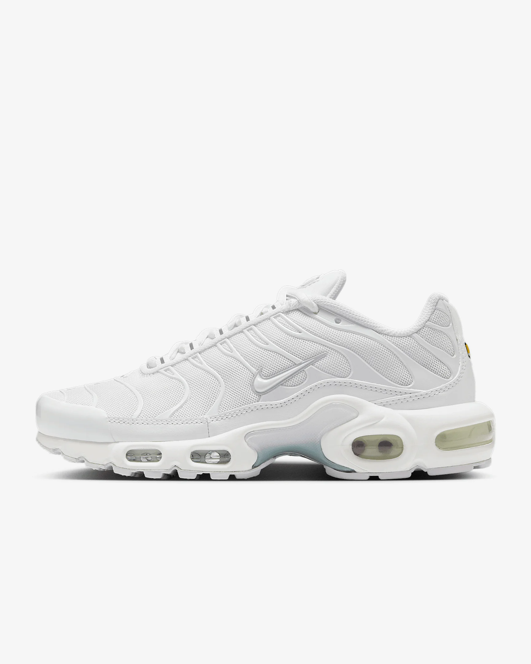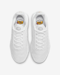 Let your attitude have the edge in the Nike Air Max Plus, a tuned Air experience that offers premium stability and unbelievable cushioning. Featuring airy mesh, the original wavy design lines and polished TPU accents on the toe and sides, it celebrates your defiant style. Benefits - Synthetic upper features airy mesh for lightweight comfort and durability. - Originally designed for performance running, Nike Air units provide lightweight cushioning that lasts. - Bringing beach life to the city, the prominent TPU arch draws inspiration from a whale's tail and adds structure while the iconic TPU fingers on the sides nod to palm trees and ocean waves. - Padded, low-top collars looks sleek and feels great. - Reinforced toe tip for added durability. Product Details - Rubber outsole - Visible Air - Not intended for use as Personal Protective Equipment (PPE) - Shown: White/Pure Platinum/White - Style: DM2362-100 SIZE & FIT Fits small; we recommend ordering a half size up
