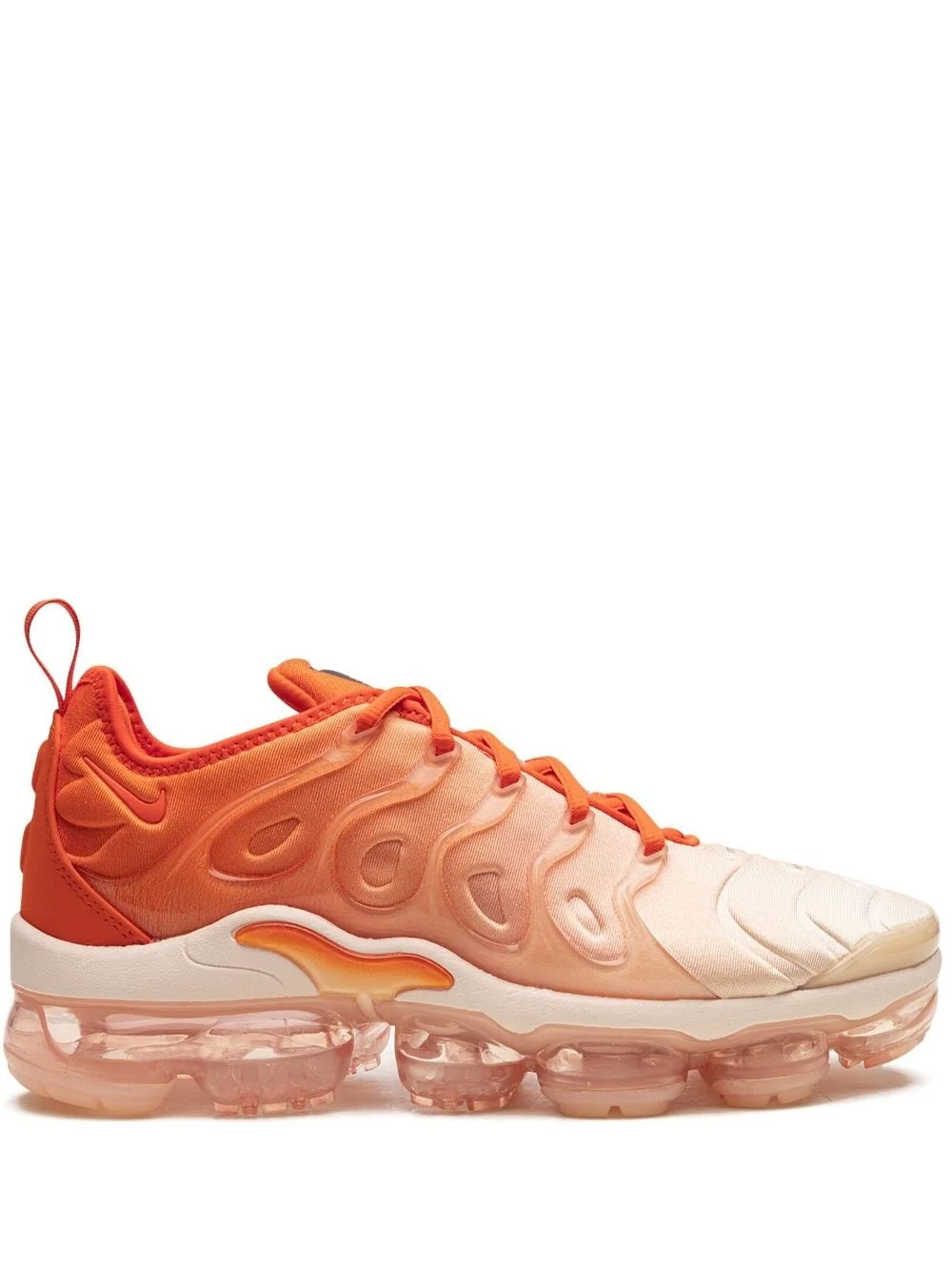 Air Vapormax Plus "Citrus" sneakers Nike's Air Vapormax Plus "Citrus" sneakers are seen here in an orange and white colourway. Featuring a wavy effect, this pair spotlights the signature Swoosh logo — a motif inspired by the wings of the Goddess of Victory. The design is complete with the signature Air VaporMax sole. Highlights - Orange/white - Signature swoosh logo detail - Round toe - Front lace-up fastening - Logo patch at the tongue - Pull-tab at the heel - Signature air vapormax sole - These styles are supplied by a premium sneaker marketplace. stocking only the most sought-after footwear, they source and curate some of the most hard to find sneakers from around the world. Imported Composition Sole: Rubber 100% Outer: Fabric 100% Lining: Fabric 100%