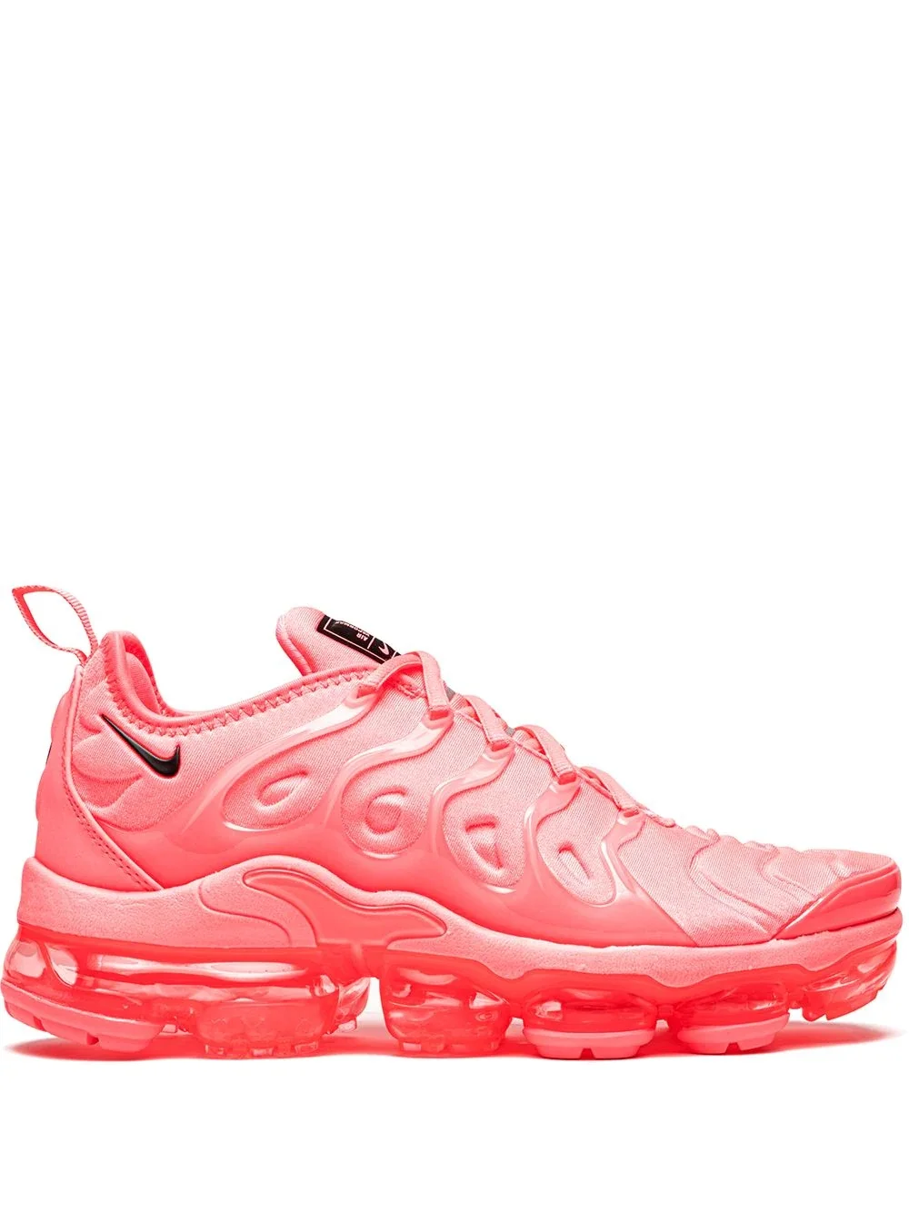 Air Vapormax Plus "Bubblegum" sneakers Inspired by bubblegum, these Nike Air Vapormax Plus sneakers in Sunset Pulse, Black and Ghost Green are set atop the silhouette's signature Air VaporMax sole for supportive cushioning. Highlights - Sunset pulse/black-ghost green - Caged design - Signature swoosh logo detail - Pull-tab at the heel - Logo patch at the tongue - Round toe - Front lace-up fastening - Signature air vapormax sole - Rubber sole - These styles are supplied by a premium sneaker marketplace. stocking only the most sought-after footwear, they source and curate some of the most hard to find sneakers from around the world. Imported Composition Sole: Rubber 100% Outer: Fabric 100% Lining: Fabric 100%